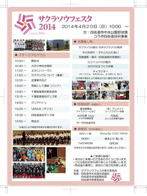 あす四街道サクラソウフェスタ2014 当日プログラム発表 (^.^)