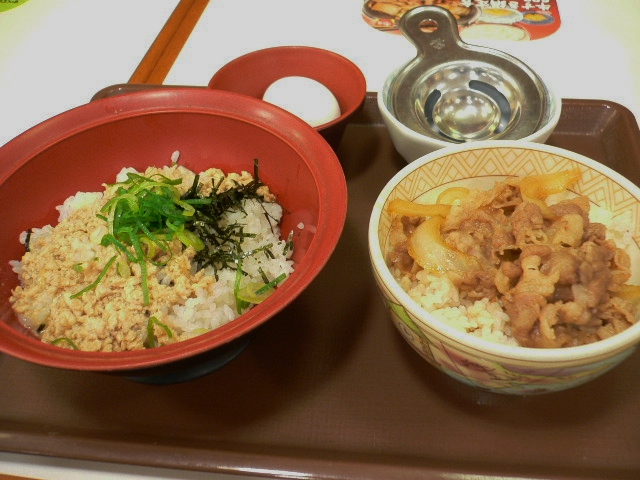 すき家 ミニ牛丼 と 新とりそぼろ丼 船橋習志野店