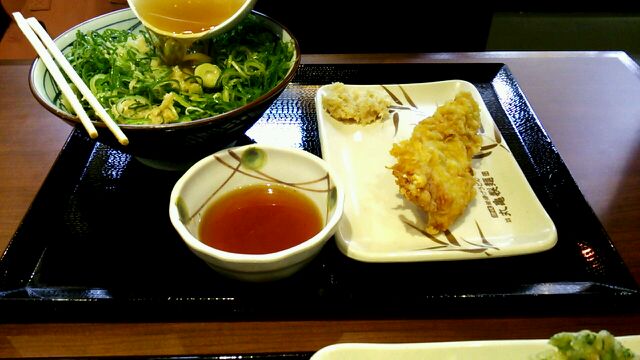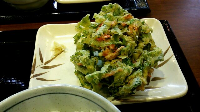 かけうどん 春菊と小エビのかきあげ