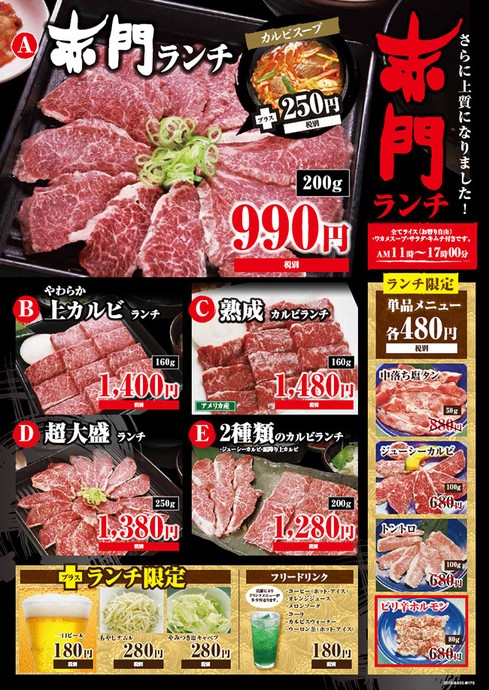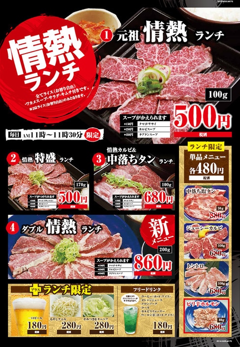 http://www.akamon.co.jp/pdf/lunch_akamon.pdf 500円プラス税で食べれるランチメニュー