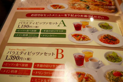 http://www.bashamichi.co.jp/menu-pk14/メイン料理 サラダ ピザ食べ放題 ドリンクバー を注文 Aセットです