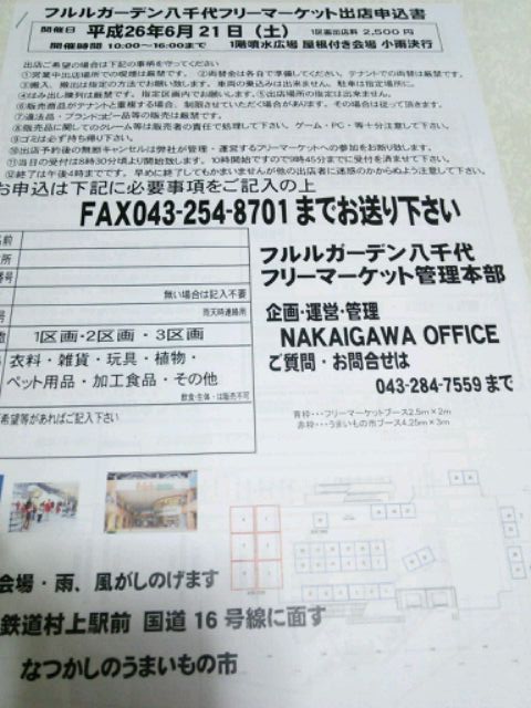 6月21日 (土)フルルガーデン八千代フリーマーケット開催 屋根付き会場